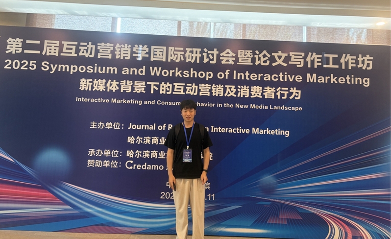 2025年7月8日至11日,由哈尔滨商业大学和《Journal of Research in Interactive Marketing》期刊联合主办的第二届互动营销国际研讨会暨论文写作工作坊在哈尔滨市举行。本次会议以“新媒体背景下的互动营销及消费者行为”为主题,吸引了来自国内外高校、研究机构和企业的专家学者齐聚一堂,共汇报了100余篇高质量学术论文,涵盖人工智能营销、社交媒体互动、消费者行为等多个前沿研究方向。上海应用技术大学消费者行为研究中心董维维老师、陈鹏同学参加了会议。