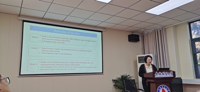 钟科教授以“绿色消费和旅游消费中的感官线索与行为反应”的题分享了研究成果和心得。邓逊博士分享了她与合作者最新研究“人工智能服务机器人是否应该采用拟人化设计?探讨竞争vs.合作心态对消费者态度的影响”。安徽财经大学消费者行为研究中心张雪婷博士和冯林燕博士分别报告了“负面新闻一定带来负面效果么? 负面新闻对公司市场性的倒U型效应”和“中国情境下奢侈品品牌真实性的形成机制”。与会人员对报告内容进行了提问和讨论,双方还就市场营销国家一流本科专业的建设经验和困惑进行了交流。