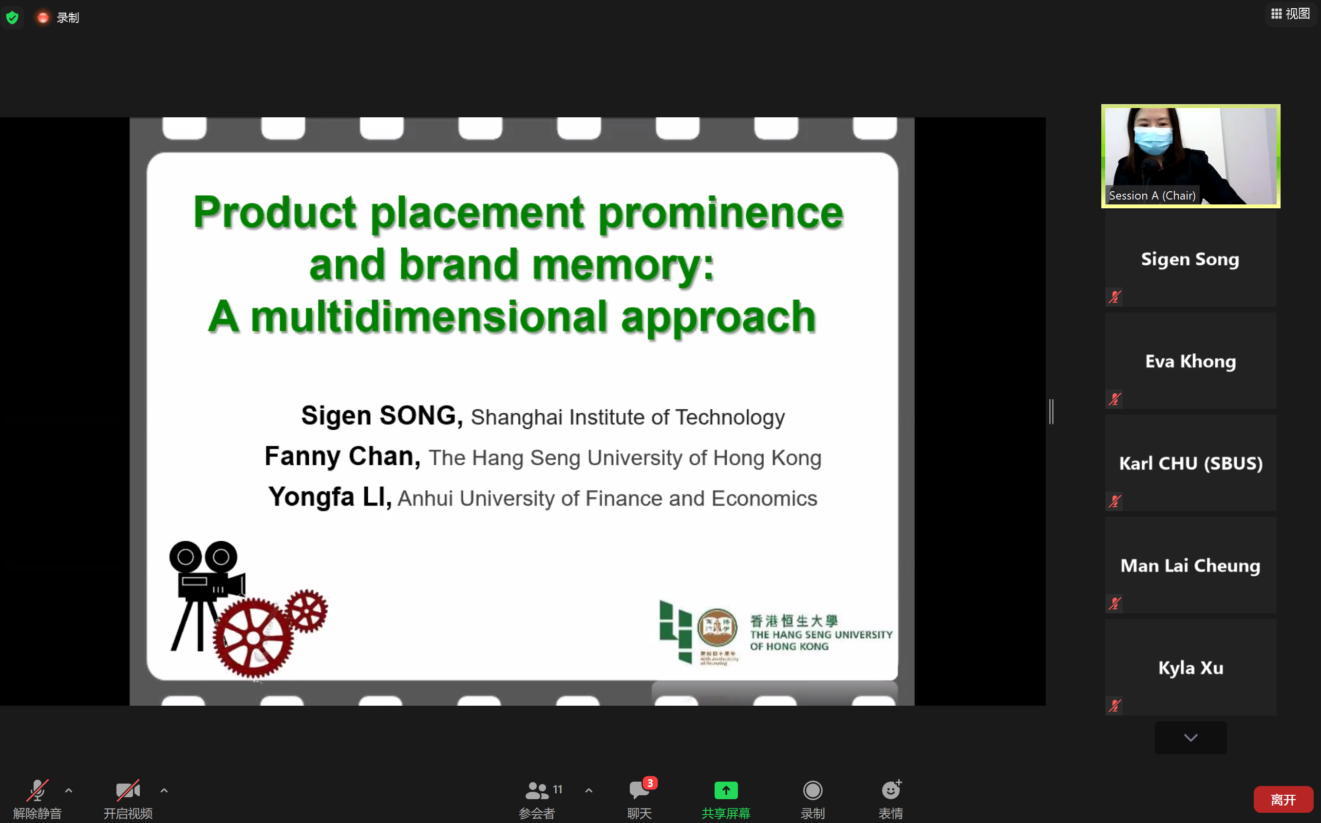 On December 5, 2020,Professor Sigen SONG attended the 2020 Academy of International Business (AIB) Southeast Asia Regional Conference online organized by The Research Institute for Business (RIB) School of Business, The Hang Seng University of Hong Kong. He and co-authors, Fanny Fong Yee CHAN (The Hang Seng University of Hong Kong) and Yongfa LI (Anhui University of Finance and Economics), submitted a paper titled “Product placement prominence and brand memory: A qualitative comparative analysis”. They were invited to represent this paper on Session 5A. Dr. CHAN made the representation online and offline simultaneously.