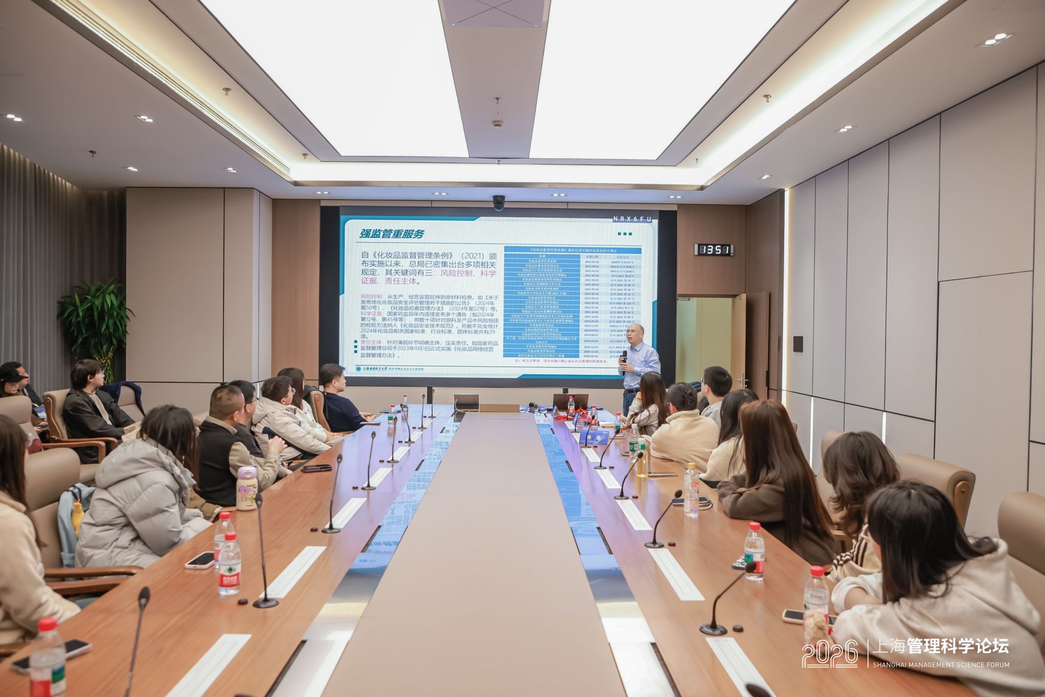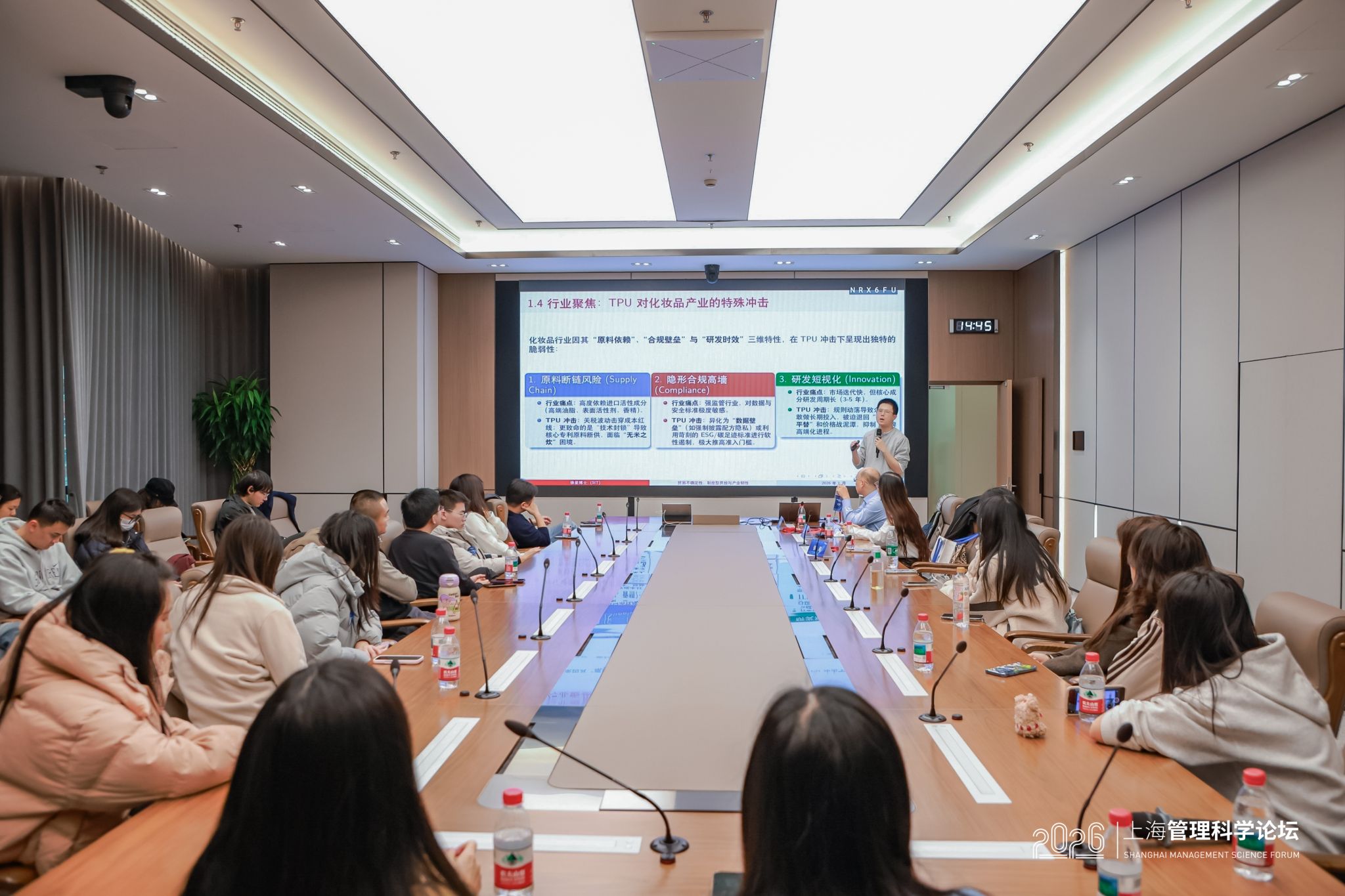 1月17日,上海应用技术大学经济与管理学院承办的2026上海管理科学论坛分论坛活动在上海交通大学举行,分论坛的主题是“大数据与复杂决策:化妆品行业的精准管理与价值创造”,论坛由上海应用技术大学经济与管理学院副院长于本海教授主持。上海应用技术大学经济与管理学院董维维博士、徐星博士、宋思根教授分别围绕主题进行发言,并与参会嘉宾进行了互动交流。